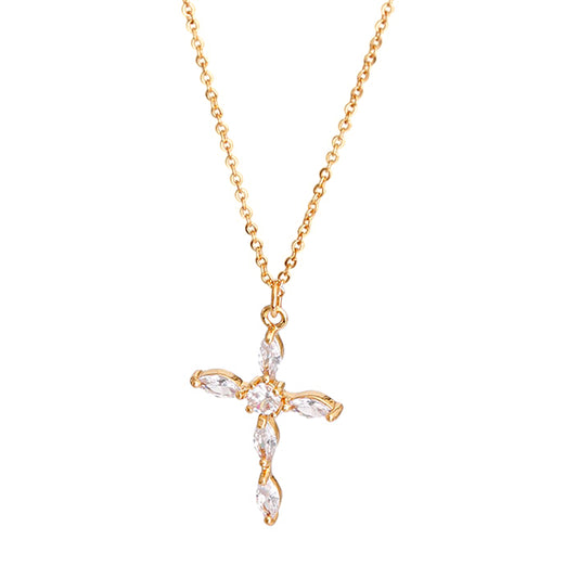 14K Gold Plated CZ Cross Necklace