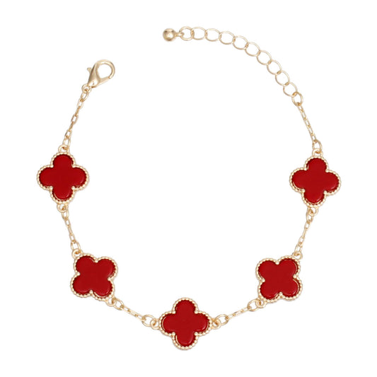 Bracelet Gold Red Quatrefoil Clover 5 Motifs