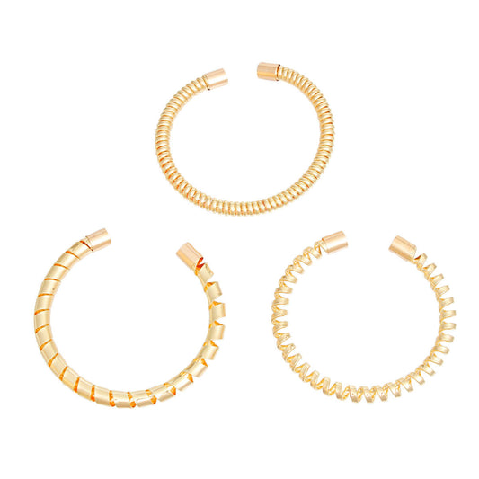 Bracelet Gold Coiled 3 Pcs Cuffs for Women