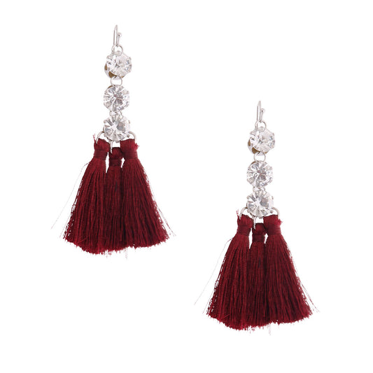 Sold outBurgundy Tassel Crystal Earrings