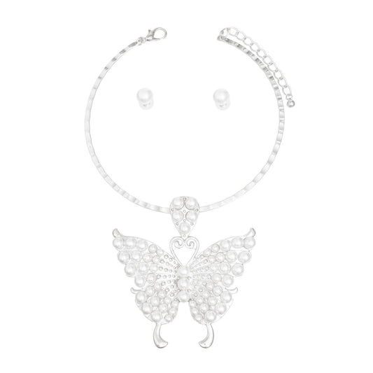 Choker Silver Rigid Rhinestone Heart Set for Women