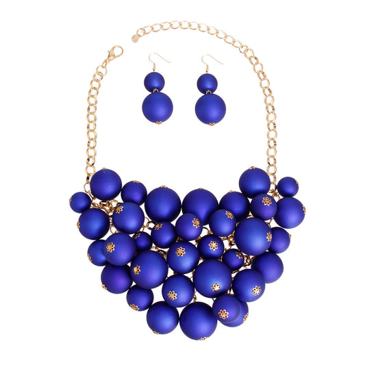 AKA Chunky Pink Green Pearl Bib Necklace Set