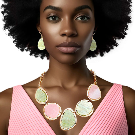 AKA Necklace Pink Green Oval Swirl Set for Women