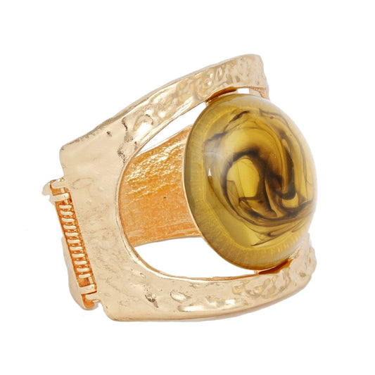 Cuff Yellow Round Swirl Resin Chunky Gold Bracelet