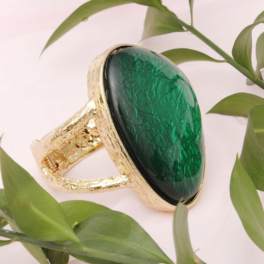 Cuff Vivid Green Resin Chunky Gold Bracelet Women