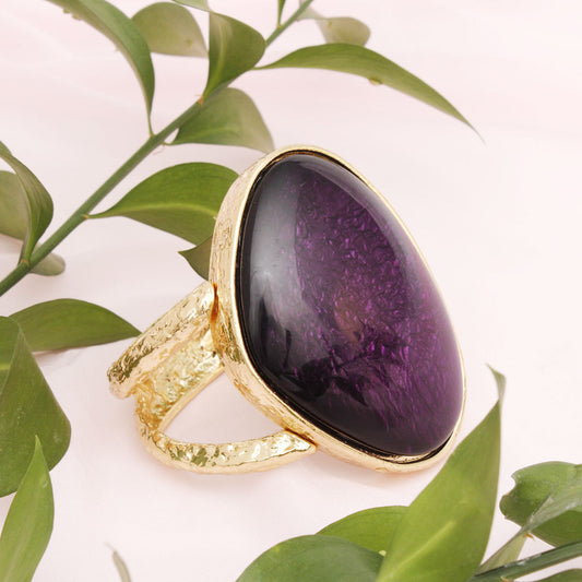 Cuff Vivid Purple Resin Chunky Gold Bracelet Women