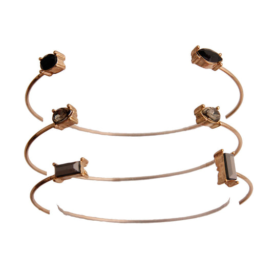 Dainty Elegant Black Crystal 3Pcs Wire Cuff