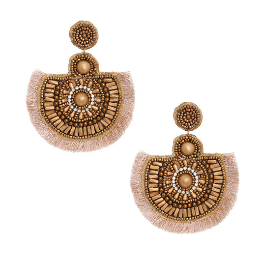 Embroidered Gold Bead Tassel Earrings