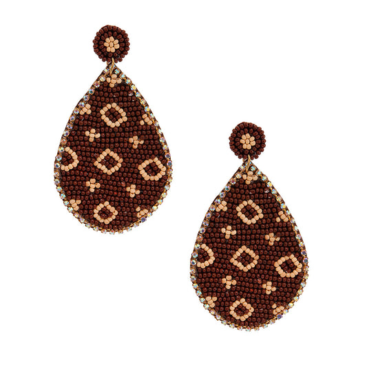 Sold outEmbroidered Brown Teardrop Earrings
