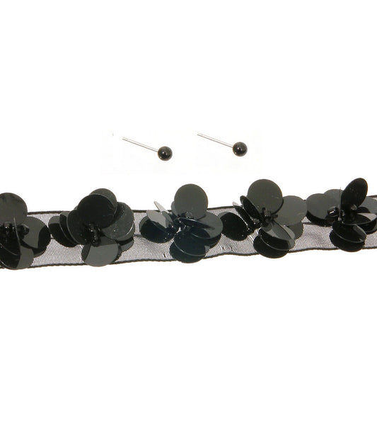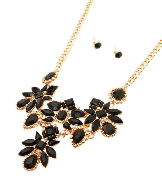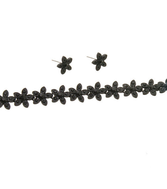 Flower Black Pendant Necklace Set