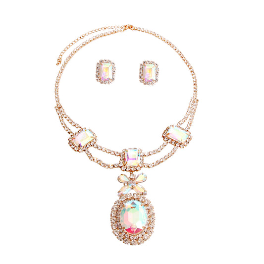 Gold Aurora Borealis Oval Bridal Necklace