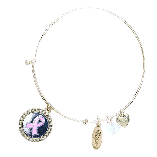 Sold outGold Breast Cancer Charm Bangle