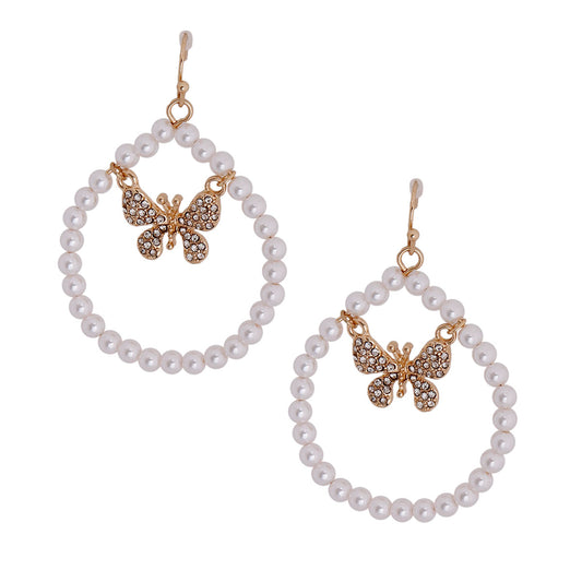 Sold outGold Butterfly in Pearl Drop Hoops