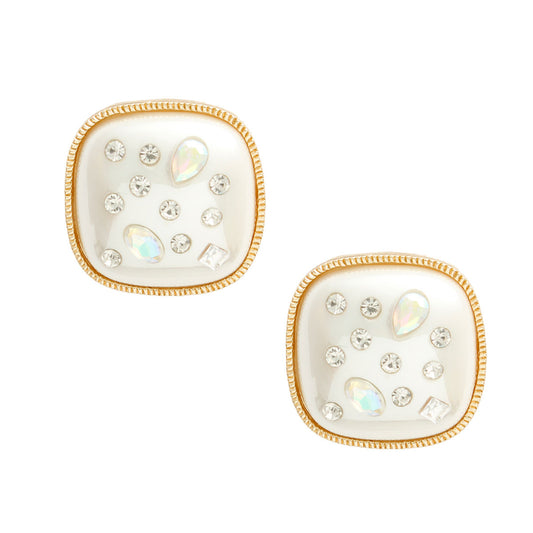 Gold Cream Pearl Square Studs