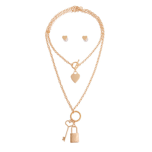 Sold outGold Lock and Key Layered Chain