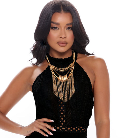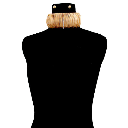 Gold Metal Wrapped Wire Cuff Choker Set with Rhinestone Detailing