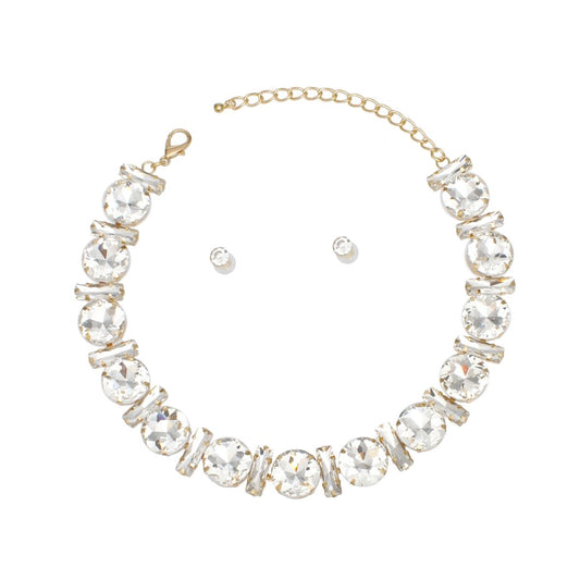 Jeweled Collar Gold Round Baguette Crystal Set