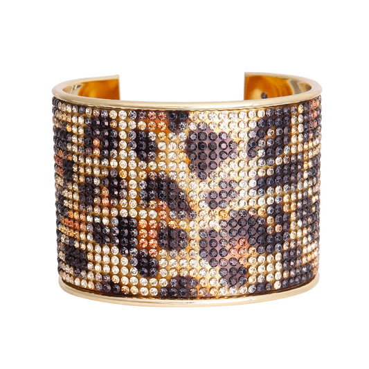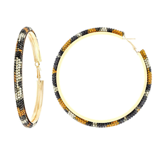 Sold outLeopard Rhinestone Lines Gold Hoops