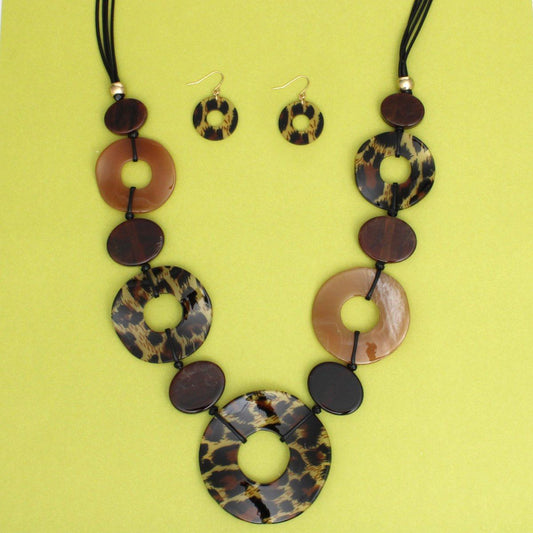 Long Linked Leopard Rings Black Cord Necklace