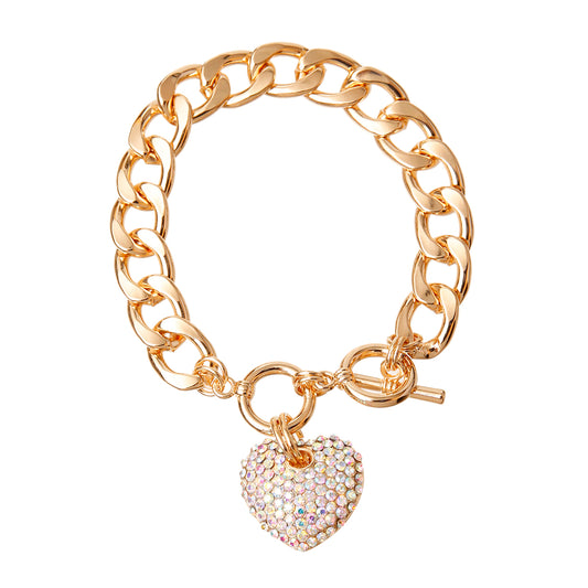 Aurora Borealis and Gold Heart Bracelet