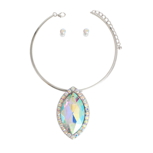 Aurora Borealis Multi Stone Angled Heart Set