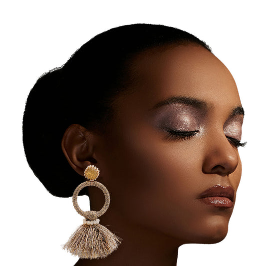 Metallic Brown Thread Tassel Earrings