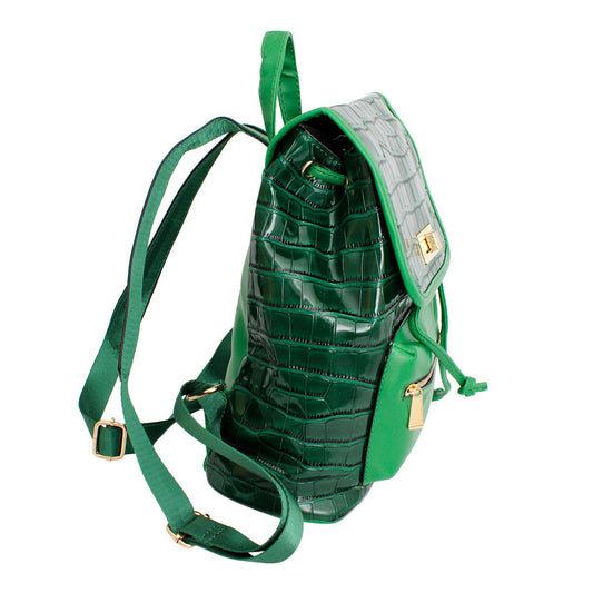 Backpack Green Croc Flap Bag Set for Women
