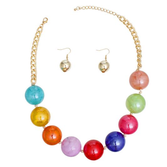 Necklace Multicolor Marble Jumbo Ball Bead Set