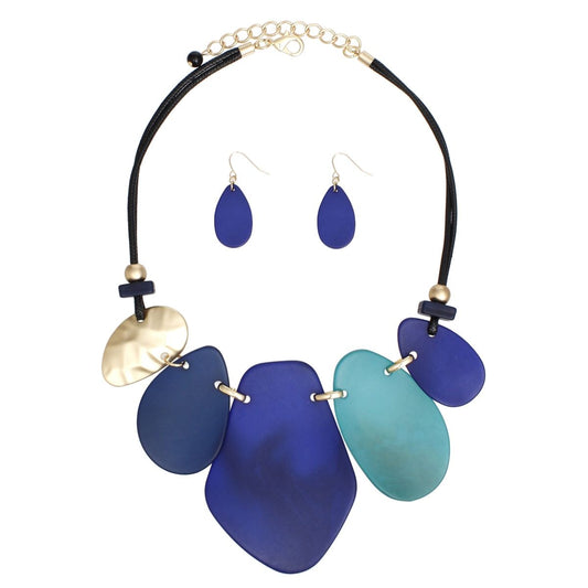 Necklace Royal Blue Marble Jumbo Ball Bead Set