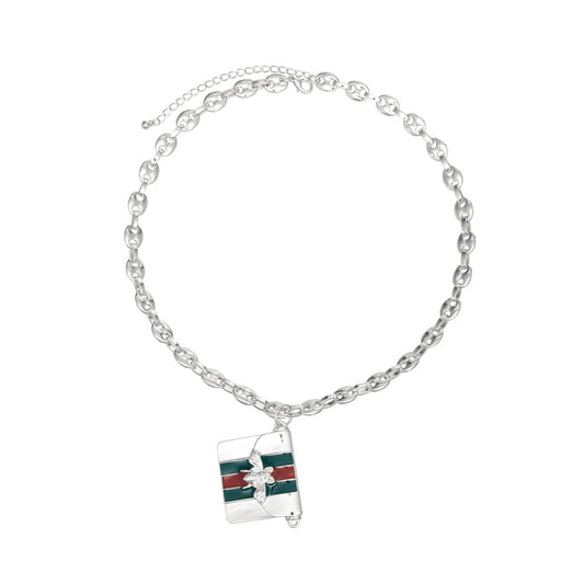 Necklace Silver Black Large Quatrefoil 16 Motifs