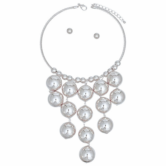 Necklace Silver Metal Ball Drop Bib Set for Women