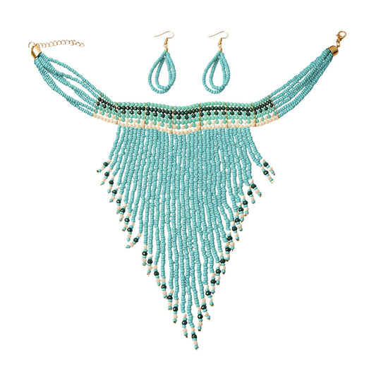 Beaded Gold Teardrop Pendant Double Necklace Set