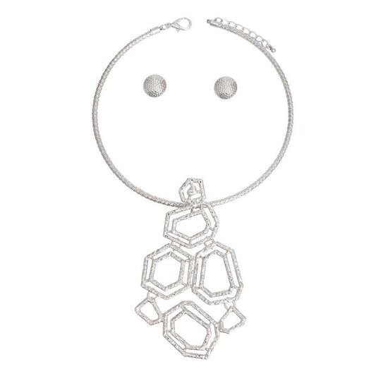 Pendant Silver 2 Layer Puffy Rhinestone Heart Set