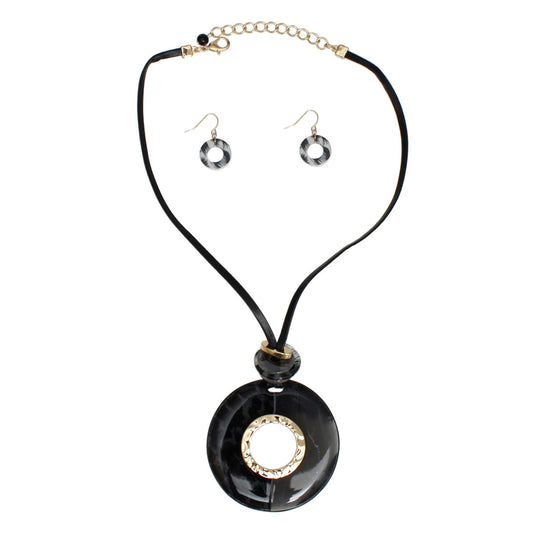 Pendant Tribal Black Leopard Ring Leather Necklace