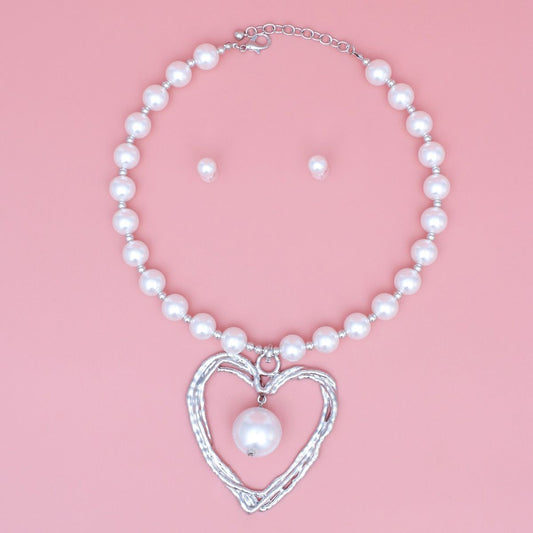 Pendant Silver Braided Wire Loop Pearl Necklace