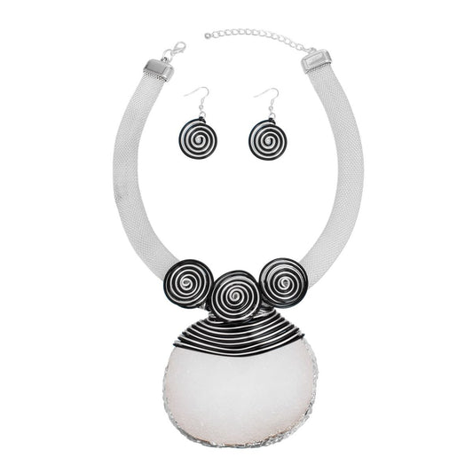 Pendant White Resin Leaf Gold Wire Tribal Necklace