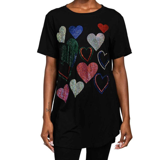 Short Sleeve T-Shirt Black Bling Hearts for Women