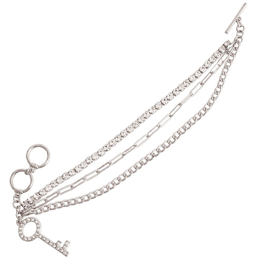 Silver Layered Chain Key Bracelet