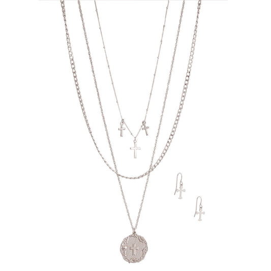 Silver Layered Religious Cross Chain