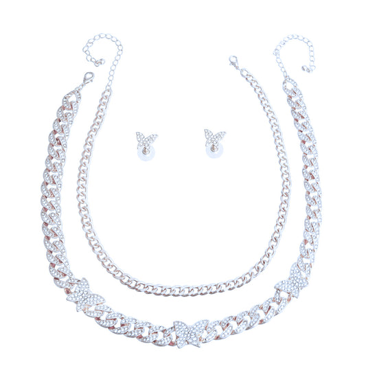 Silver Layered Butterfly Cuban Chain Set