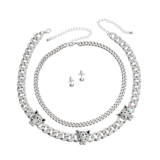 Silver Iced Cuban Leopard Chain Set