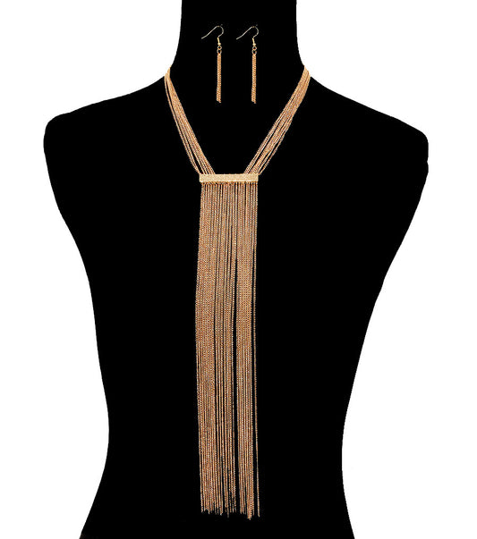 Tassel Gold Mesh Brown Wooden Bead Necklace