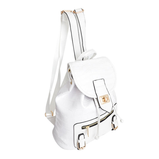 White Croc Cinch Backpack Set