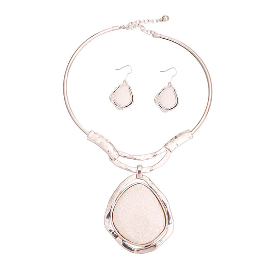 White Ivory Clay Teardrop Flower Bridal Earrings