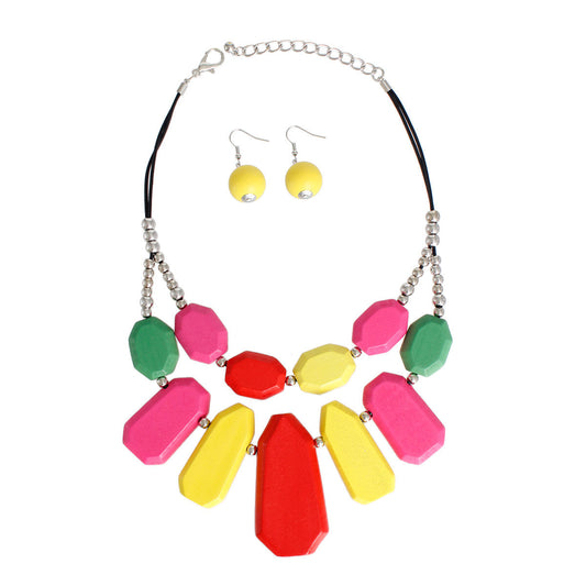 Wine Red Double Layered Necklace Set