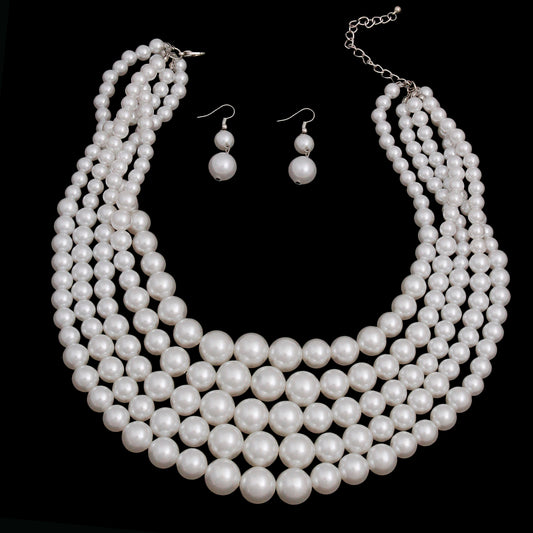 White Multi Strand Pearl Necklace Set