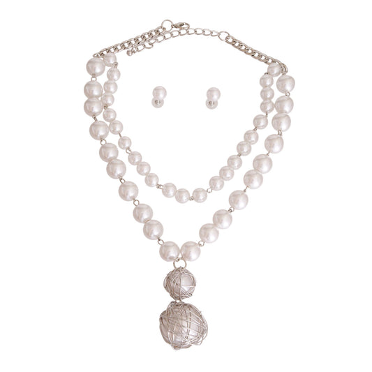 White Pearl 2 Strand Pendant Necklace