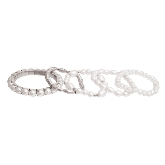 White Pearl 3 Pcs Classic Chunky Bracelet Set