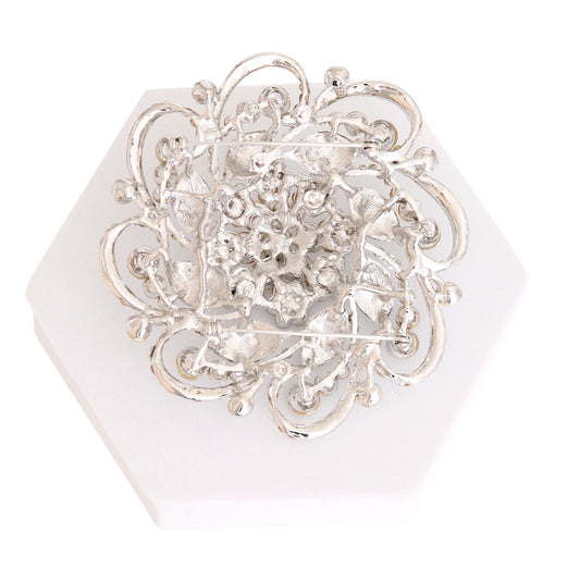Sold outXlarge Silver Crystal Flower Brooch