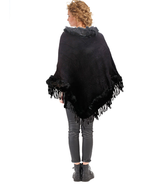 Sold outBlack Fur and Fringe Poncho